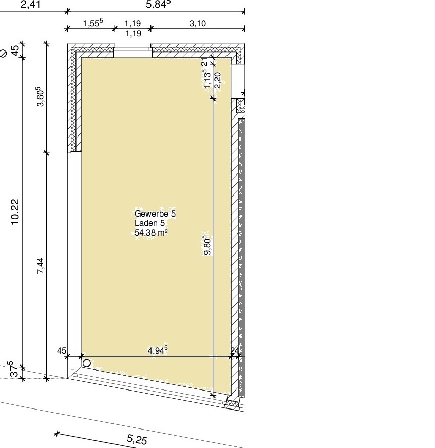 mit Gewerbe 5 / Laden 5 bezeichnet und in Farbe beige dargestellt.