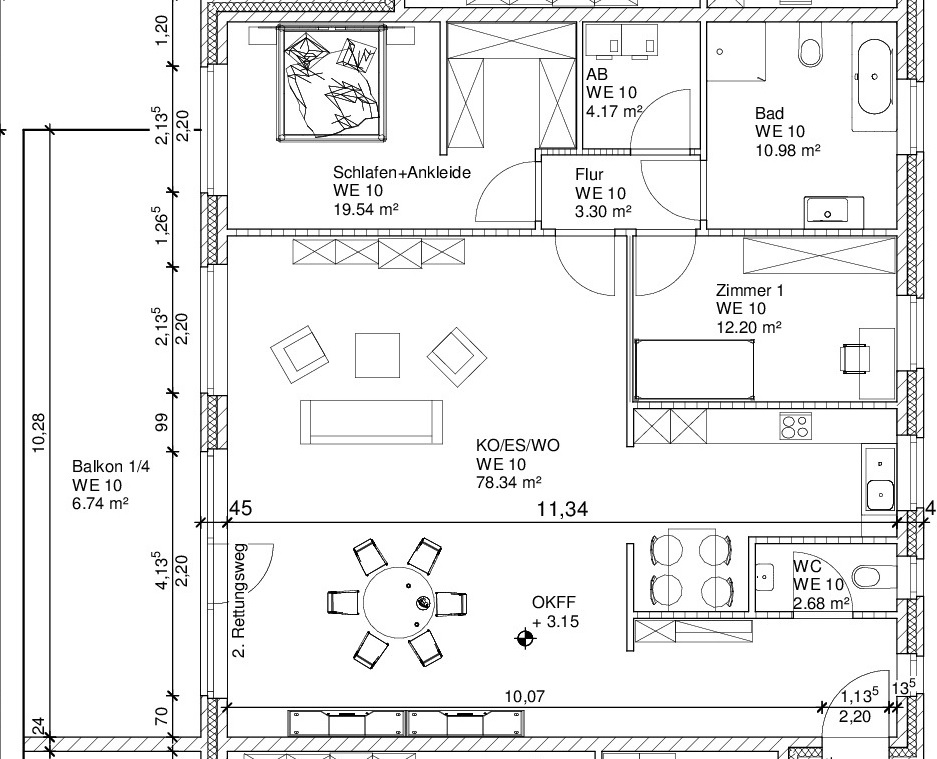 Wohnung im 1. Obergeschoss Gang 2 mit einem Balkon,