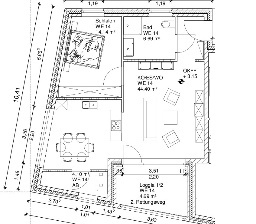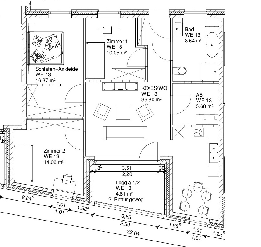 Wohnung im 1. Obergeschoss Gang 2 mit einer Loggia,