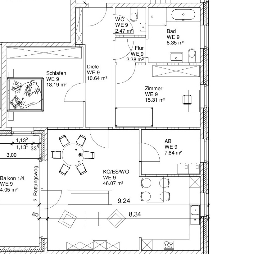 im Aufteilungsplan mit WE 9 bezeichnet und in Farbe: mittelblau.